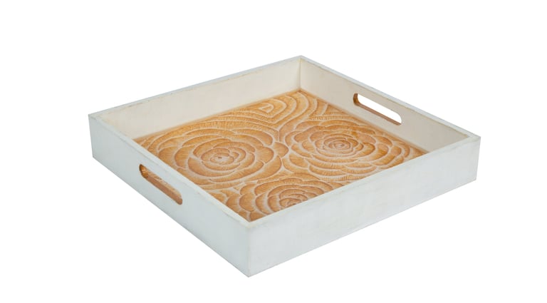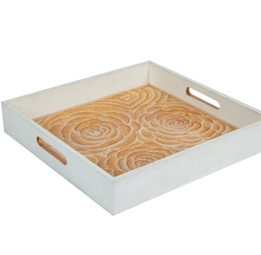 Elevate your serving experience with this exquisite handmade wooden tray with captivating 3D textured art. A lush rose design, meticulously crafted with texture paste, graces a luxurious golden background. The artistry is further enhanced by a premium resin layer, imparting a glossy finish that adds a sophisticated shine and ensures durability. This unique blend of craftsmanship and design transforms this tray into a statement piece, bringing elegance and flair to your dining or decor setting.