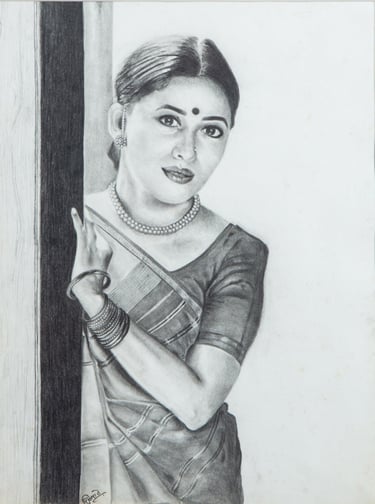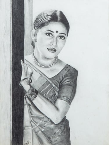 Step into the captivating world of art with this exquisite hand-drawn sketch featuring the iconic Bollywood diva, Madhuri Dixit. Celebrated for her graceful charm and timeless beauty, Madhuri's essence is meticulously captured in this stunning portrait. Every stroke and intricate detail beautifully depicts her mesmerizing presence, showcasing her elegance and charisma. Encased within an elegant white frame, this artwork exudes a sense of sophistication and opulence, making it a true statement piece. The artist's skillful craftsmanship and attention to detail shine through, immersing viewers in the enchanting allure of Madhuri Dixit, a true embodiment of Indian cinema's golden era. This remarkable sketch is a testament to the enduring charm and everlasting allure of both the subject and the art form itself.