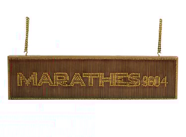 Elevate your entrance with this meticulously crafted handmade nameplate, where nails and threads intricately weave into a stunning personalized design. The golden-hued MDF base, coated with a glossy resin finish, enhances the elegance. Each thread forms a work of art, creating a unique and beautiful nameplate that combines artistic precision with a touch of opulence, welcoming guests with style and sophistication.