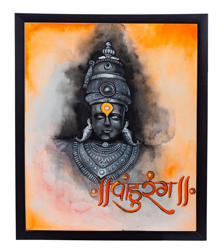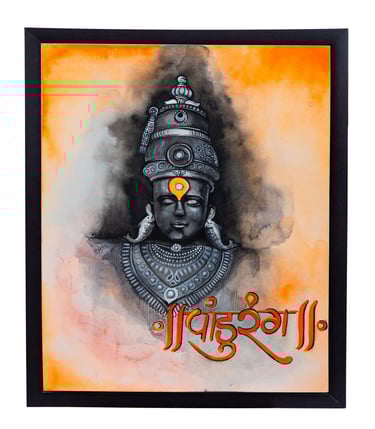 Behold the divine splendor of Maharashtra's supreme deity, Pandurang, brought to life in this transcendent watercolor masterpiece. Reverence and spirituality intertwine as vibrant hues meticulously capture the essence of the revered god. The portrayal radiates divine energy, offering a visual pilgrimage. Each brushstroke is a prayer, and the harmonious colors resonate with sacred vibrations. This artwork, 'Pandurang's Grace,' is a testament to the artist's divine connection, inviting viewers into a realm where art becomes a spiritual experience.