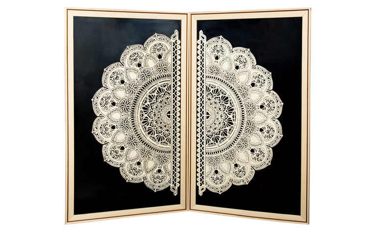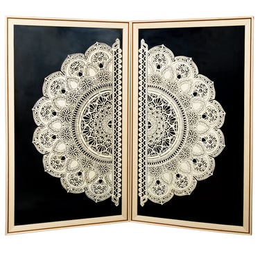 Experience the exquisite beauty of delicate paper-cutting artwork at our website. Each design is meticulously crafted by hand, showcasing the intricate precision and patience required for this challenging art form. Our pieces are created with a keen eye for detail, with no room for error in this unforgiving medium. Encased between two glasses, our artworks reveal mesmerizing beauty in a unique see-through display. Explore our collection of stunning half-circle designs, their beauty is enhanced when combined. Discover the elegance of paper-cutting artistry brought to life in every piece.