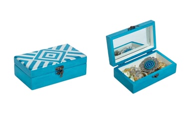 Introducing our hand-painted MDF jewelry box, a testament to contemporary elegance that mirrors your unique personality. Embellished with radiant metallic hues, the intricate design transcends conventional boundaries, offering a modern aesthetic that captivates the eye. Each stroke of artistry on this box reflects your distinctive style, adding a touch of glamour and sophistication to your cherished accessories. Elevate your jewelry collection with this fusion of modern design and personalized expression.
