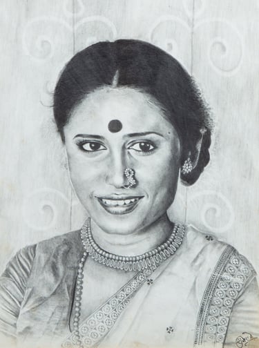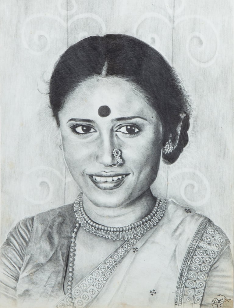 This exquisite hand-drawn sketch captures the timeless allure of the iconic Smita Patil. With meticulous attention to detail, the artist has masterfully portrayed her candid beauty, showcasing her eternal charm. The sketch radiates a sense of grace and sophistication, accentuated by the choice of an elegant white frame that adds a touch of opulence. Every stroke of the artist's hand brings out the essence of Smita Patil's enchanting persona, immortalizing her in this captivating artwork. The combination of skillful craftsmanship and the subject's mesmerizing presence creates a truly captivating piece that will surely be a cherished focal point in any setting.